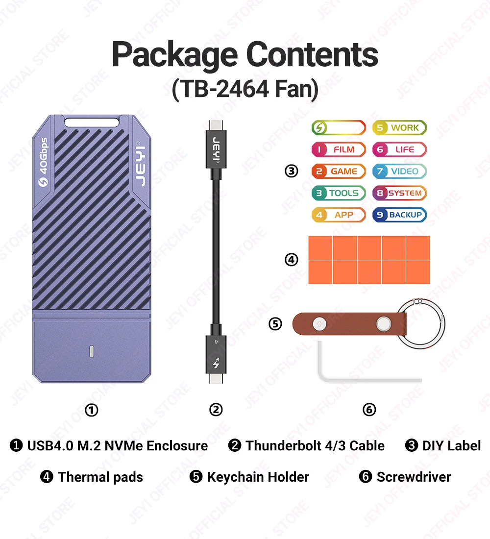 1 × JEYI ASM2464 NVMe Enclosure 40G
