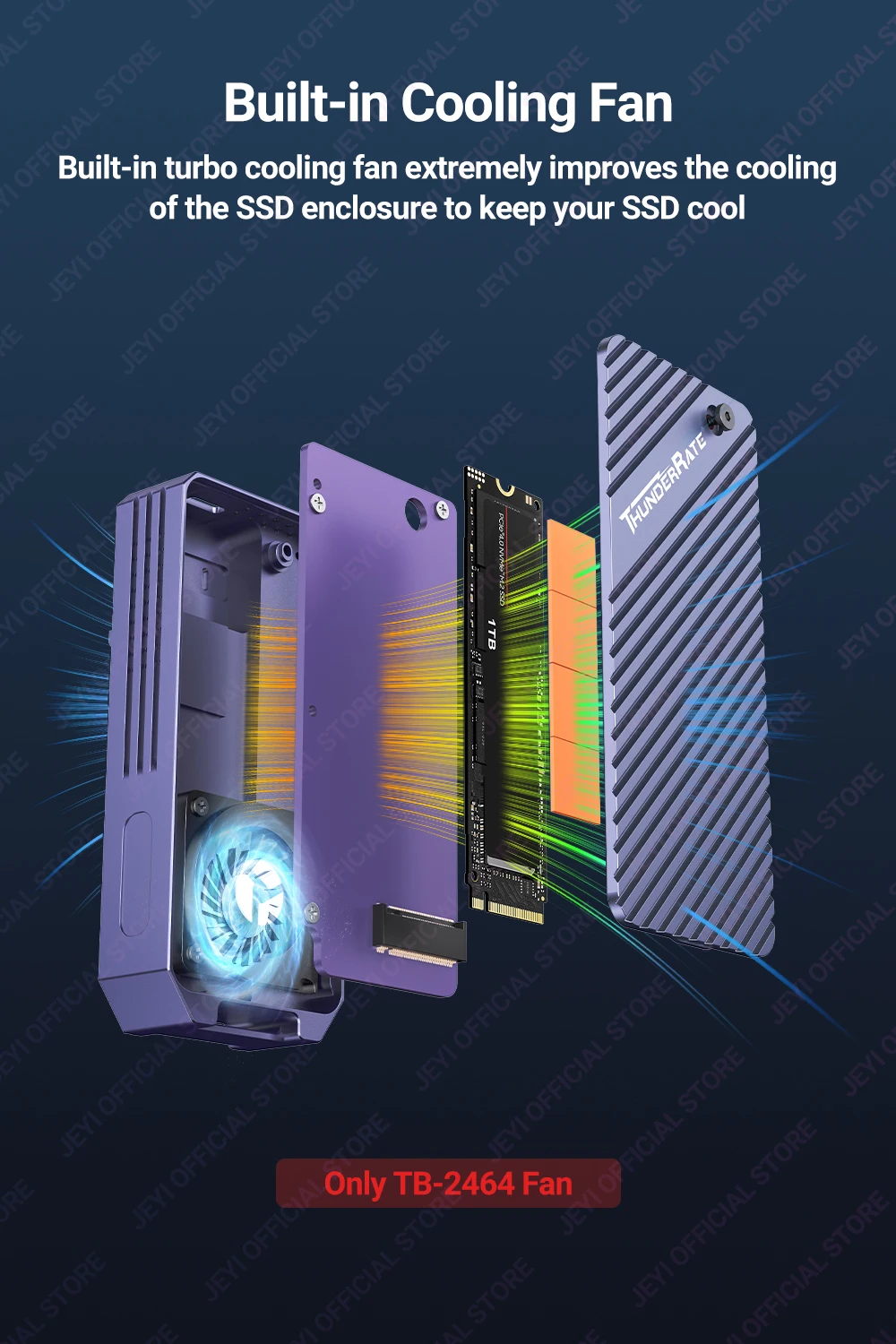 Built-in turbo cooling fan extremely improves the cooling of the SSD enclosure to keep your SSD cool.