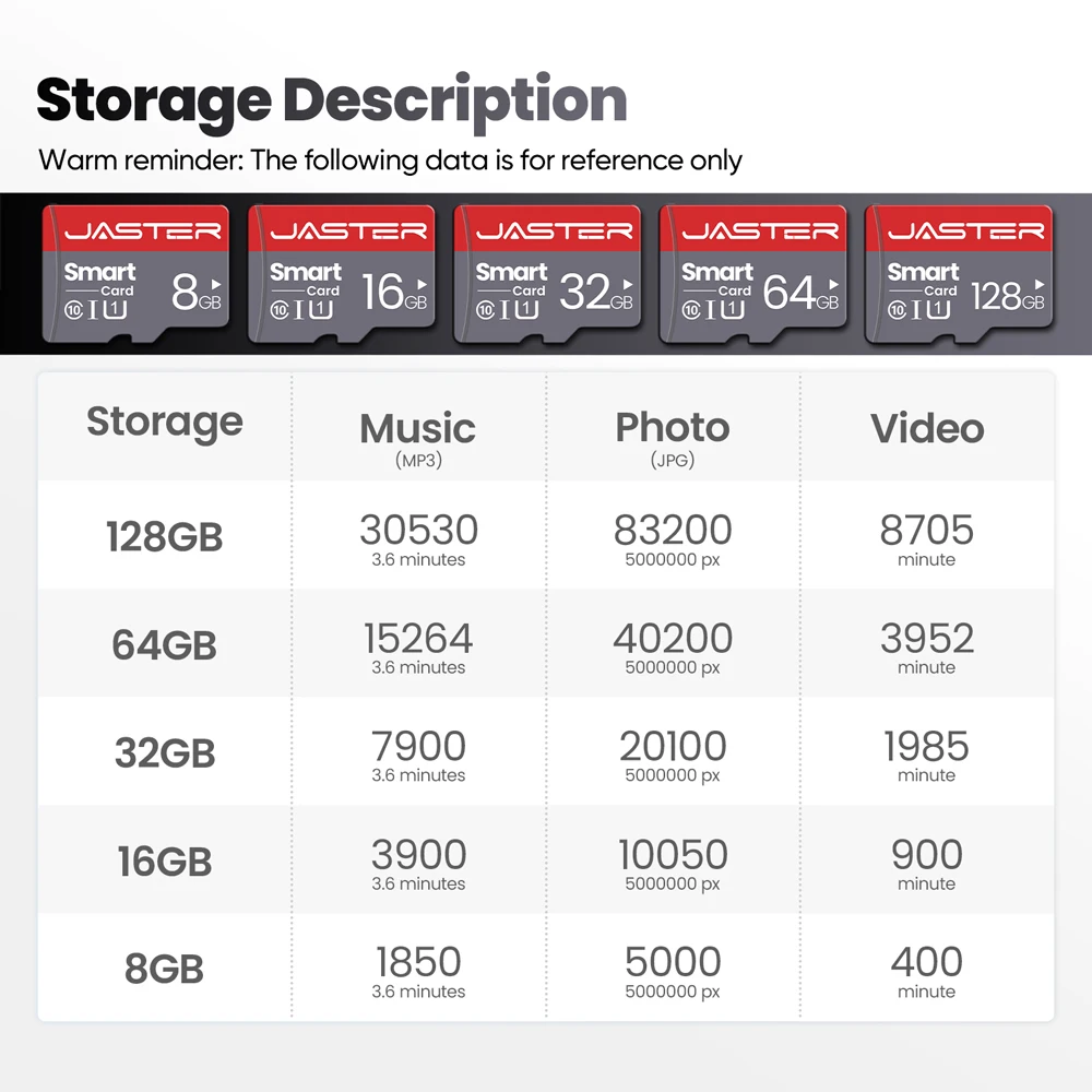 • Multiple Storage Options: Includes a 128GB Smart SD Class 10 card, a 64GB Red Smart HC card, and additional 32GB, 16GB, and 8GB TF cards to provide flexible storage solutions for different devices.