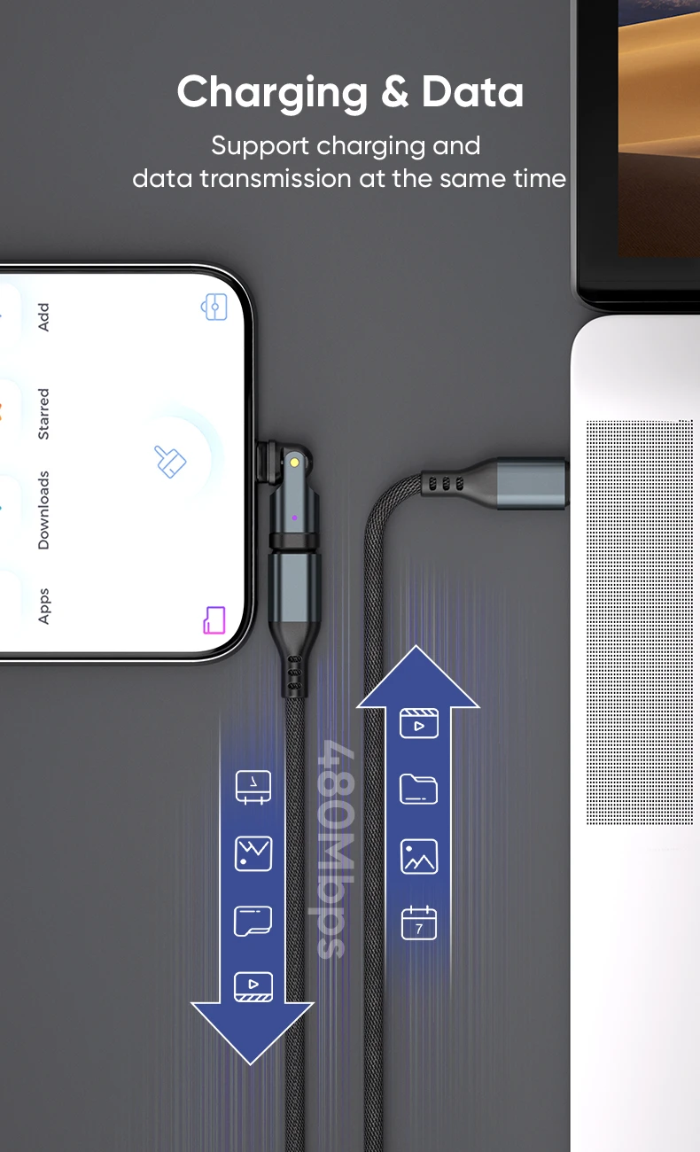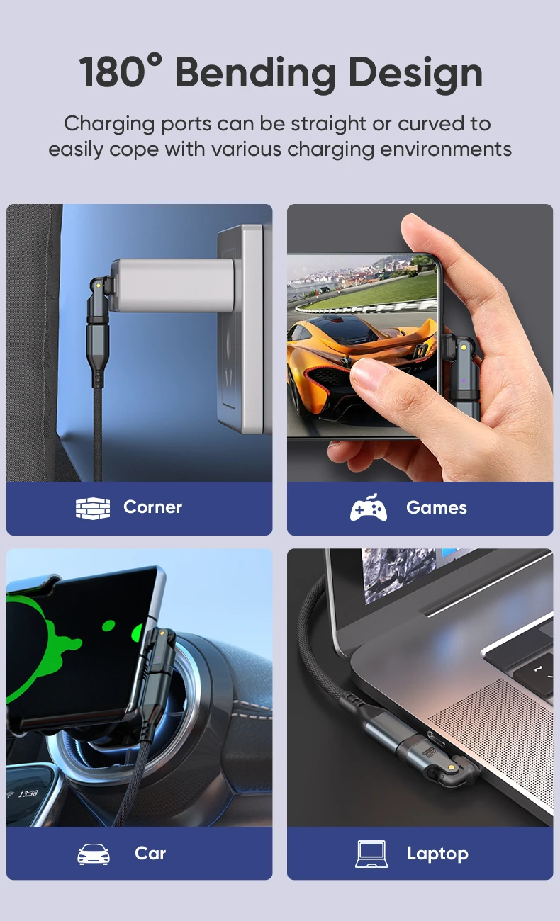Straight cable and L-shaped cable can be freely switched, charging is more convenient