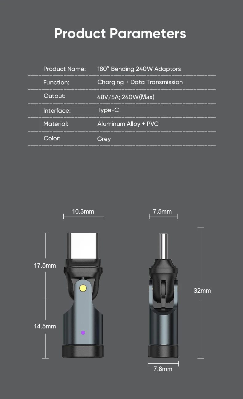 USB-C Adapter 240W 5A | Type-C Male to Female Fast Charging Converter